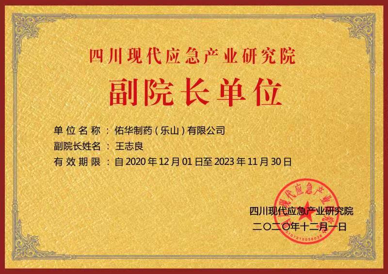 热烈祝贺佑华制药(乐山)有限公司成功入选《四川省应急产学研协同创新联盟合作单位》、《四川现代应急产业研究院副院长单位》,并获批成立“四川现代应急产业研究院应急物品研究中心”